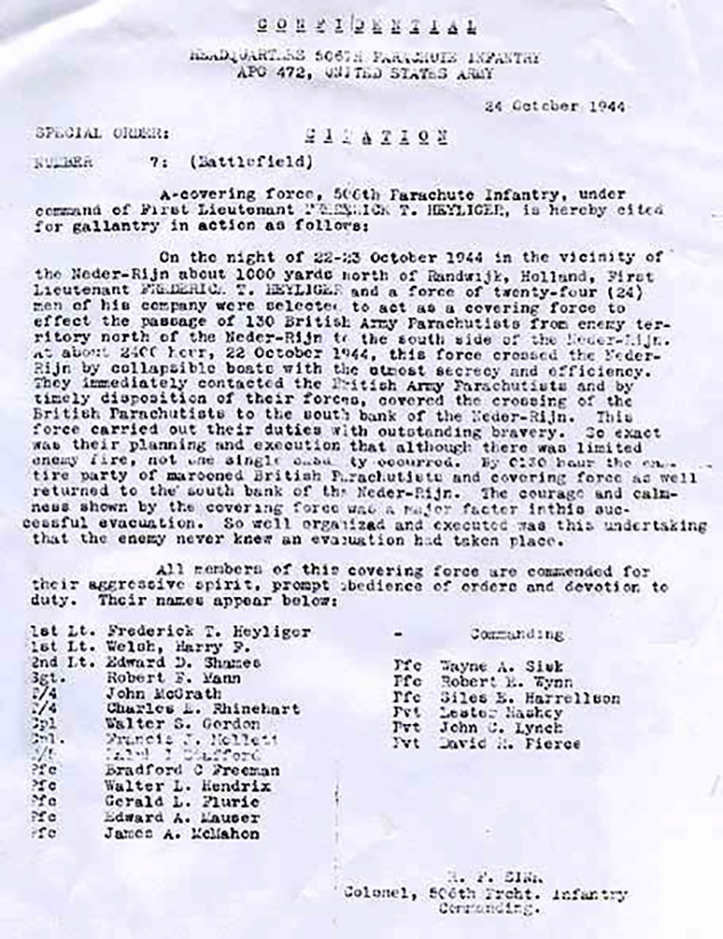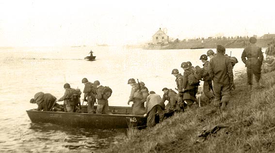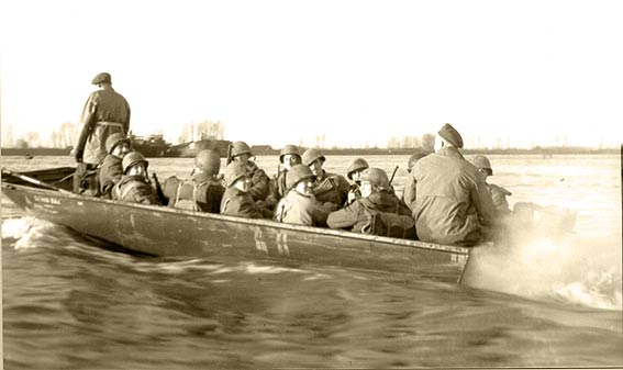 Alleen maar om u een idee te geven.... Dit zijn niet de mannen van Easy maar die van de B Compagnie van het 502de. die de oversteek van de Waal maken. De mannen van Easy staken de Nederrijn over en deden dat 's-nachts met 20 man omdat ze de Britse paratroopers moesten redden terwijl de Duitsers overal waren. Just to give you an idea..... These are not Easy men but from B Company 502nd. crossing the Waal River. 20 Easy men crossed the Lower Rhine during the night because they had to resque the British Paratroopers while the Germans were everywhere. |