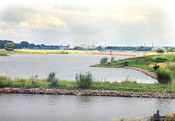 This is the river Lower Rhine near the location were the famous crossing took place. They helped the English Red Devils cross at the spot where the arrows are. Dit is de plaats waar de beroemde oversteek van de Nederrijn was. Ze hielpen de Britse Red Devils oversteken op de plaats die door de rode pijltjes wordt gemarkeerd. |