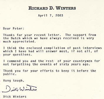 brief aan Dick Winters met daarbij de foto compilatie die ik op 6 juni 2001