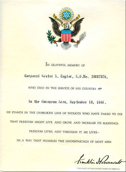 where he was reburied. In fact Lester has been interred 3 times. The first time in a field grave at Best. The second time at Wolfswinkel in Son and the 3rd time in Loretto Tennessee. (link to the burial documents courtesy Tom Timmermans.) |