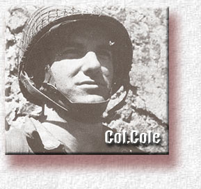 In the morning of Sept.18, 1944, Col. Cole (left) was in the woods between Son and Best (see map below) Because the Germans tried to get nearer to them Cole asked air support and left his foxhole. a Shell exploded near the foxhole and his radioman was killed instandly. Cole was wiping of the blood and brains from the radio when someone told him that support was coming. While the P-47's fired Cole walked out in front of his men and beyond the woods. For a brief period, he stood there deliberateliy in the open, with his hand shielding his eyes, looking up at a circling plane. Then a sniper's bullet from a house 100 yards away hit him in the temple and he died instantly. A non-expected ending of a young leader, Texas born and West Point educated who fought at Carentan (Normandy) |