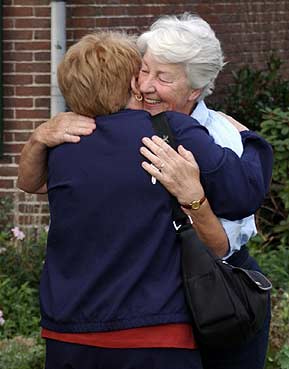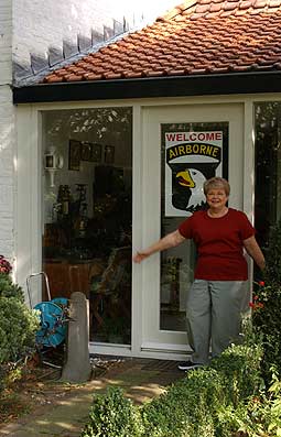 After 60 years, on September 11th, 2004, the sister of Lester Taylor (Betty) landed on Amsterdam Airport to attend the September commemoration in Eindhoven because of the sixtieth anniversary of the liberation of that town. For the first time she would visit the environs were her brother was killed in action for our freedom. She also would meet for the first time the woman who (together with her sister Dora) took care for her brother's temporary grave site at Son. |