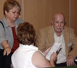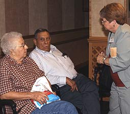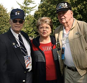 | Above left : Betty meets Joe Hennessey and his wife. Joe was in the same company as her brother was. Middle photo: Meeting John Farell and (right photo) Celso Garcia to ask if they had know her brother. Garcia did not remember thought Betty told him she had a picture of him, together with her brother | ||||||||||||||||||||||||||||||||||||