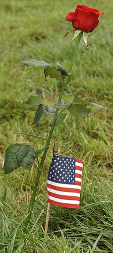 | Finally, after 60 years. A rose and an American flag on behalf of the Taylor family. A touching moment.... This is the spot that Dora took care for during 4 years. | |||||||||||||||||||||||||||||
