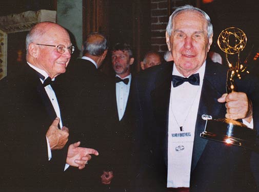 A very proud Amos "Buck" Taylor with one of the Emmy Awards. This picture was taken during the HBO party were Steven Spielberg and Tom Hanks were present too. Next to Buck a smiling Herb Suerth | ||||||||||||||||||||||||||