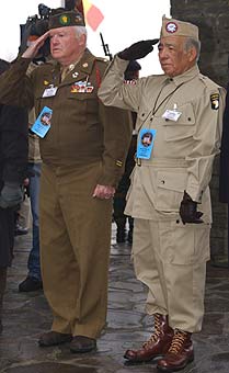 | Some hours before, 6 veterans from Easy Company, Bill and Babe, Don Malarkey, Buck Compton, Shifty Powers and Ear McLung visited the cemetery to pay respect to their falling comrads from Easy Company, among them Muck and Penkala. | ||||||||||||||||||||||||||||||||||||||||||||||||||||||||||||||||||||||||||||||