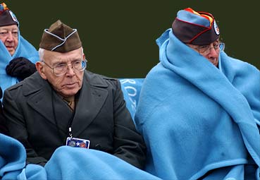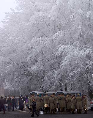 It was cold, foggy and a little bit snow had fallen. For the veterans a stand was build were they also could use a warm blanket. There was a wreath laying by the Mayor of Bastogne (Mr. Collart) and three representatives of the Association Veterans of the Battle of the Bulge. |