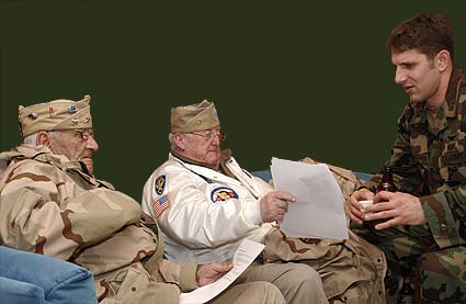 | Throughout the war, however, the heart and soul of the Filthy 13 remained a survivor named Jake McNiece, a half-breed Indian from Oklahoma - the toughest man in the squad and the one who formed its character. McNiece made four combat jumps, was in the forefront of every fight in northern Europe, yet somehow never made the rank of PFC. The survivors of the Filthy 13 (one of them is John Agnew who also was present in Bastogne during the commemoration-right) stayed intact as a unit until the Allies finally conquered Nazi Germany. The book does not draw a new portrait of earnest citizen soldiers. Instead it describes a group of hardscrabble guys whom any respectable person would be loath to meet in a bar or dark alley. But they were an integral part of the U.S. war against Nazi Germany. A brawling bunch of no-goodniks whose only saving grace was that they inflicted more damage on the Germans than on MP's, the English countryside and their own officers, the Filthy 13 remain a legend within the ranks of the 101st Airborne. | ![]() |