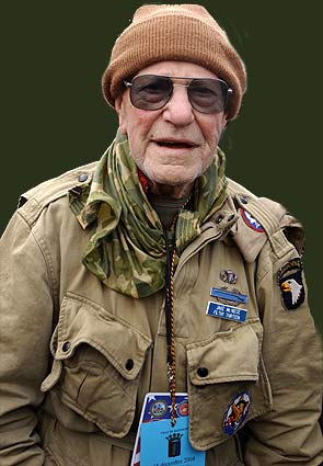Among the veterans on Mc Auliffe Square in Bastoge I spotted Jake McNiece.(left) He is a survivor of 4 combat jumps as a pathfinder with the 101st Airborne Division in World War II. It was his job to land with a few other soldiers to mark the drop zones for the rest of the division. He is also the founder of the "Filthy Thirteen", the group that the movie "The Dirty Dozen" was based on. The "Filthy Thirteen" would land behind enemy lines to sabotage or blow up targets and cause general havoc. Jake has written a book about his experiences, entitled "The Filthy Thirteen", Within the ranks of the 101st Airborne Division Screaming Eagles, a sub-unit attained legendary status at the time, its reputation persisting among veterans over the decades. Primarily products of the Dust bowl and the Depression, the Filthy 13 grew notorious, even within the ranks of the elite 101st. Never ones to salute an officer, or take a bath, this squad became singular within the Screaming Eagles for its hard drinking, and savage fighting skill--and that was only in training. Just prior to the invasion of Normandy, a "Stars and Stripes" photographer caught U.S. paratroopers with heads shaved into Mohawks, applying war paint to their faces. Unknowns to the American public at the time, these men were the Filthy 13. After parachuting behind enemy lines in the dark hours before D-Day, the Germans got a taste of the reckless courage of this unit - except now the men were fighting with Tommy guns and explosives, not just bare knuckles. In its spearhead role, the 13 suffered heavy casualties, some menwounded and others blown to bits. By the end of the war 30 men had passed through the squad. |
