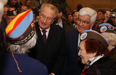 | The King and the US ambassador in an animated converstaion with some of the veterans. Among them the nurses Rose Dewing Young en Kate Flynn Nolan.(left) | |||||||||||||||||||||||||||||||||||||||||||||||||||||||||||||||||||||||