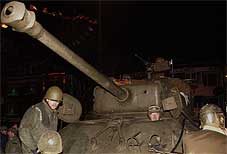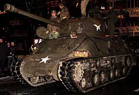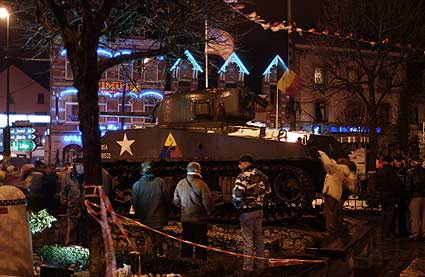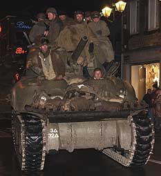 After the commemoration at the City Hall there was a spectacular light and sound show in the streets of Bastogne with a lot of vintage Army Vehicles |
