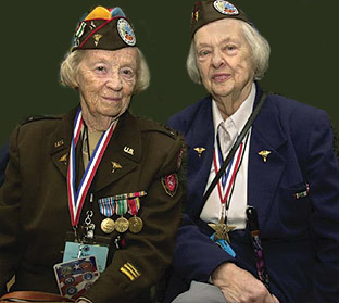 My honest thing is that the soldiers of that time, and especially the ones that fought in the Bulge, had a closer contact with the female nurse, because we were all much closer to combat. And I think to this day these men show us the greatest respect." Are there particular faces you remember? "I try not to because I had several boys that were on standby beside me when I was working on the ones coming in that were severely wounded. The corpsmen kept nursing, cleaning them and so forth, but my main job with those boys was to just keep talking to them. As I was working on others, I would call them by name and kind of chatter with them, you know, because we knew that they were not going to make it. We you have to give that. It's not part of your job, but part of your being, to give them that support. Sometimes they would think you were their mother our someone, and it became a very intimate, personal thing to talk to these kids when they were hurting. We weren't much older than they were, but we had the job of being supportive of them. What mark has your generation left on the world? "We're getting cliche, but I think we were good examples to the generations to come afterwards, because we came from the Depression, into a war, and then were offered our education. So we were given a way to develop ourselves that maybe no other generation has had. I was sent home on leave when the (atomic) bomb was dropped. They extended our leaves and then finally they sent our discharges. They wanted to get nurses into civilian life because there was a shortage. I married and had three children. And most of the time during their growing years I was night supervisor in a small private hospital in New York City." |