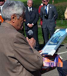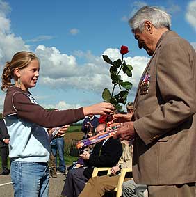 One of the present children offered a rose and a picture of the monument to Jim Megellas.(above right) |