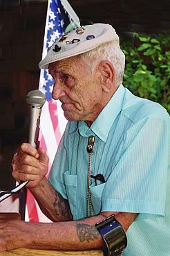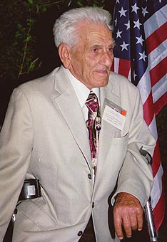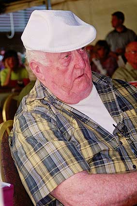 Because Ron Speirs did not attend the reunion I visited him at his home to present him a compilation I made of the 46 veterans that were present at the world premeries from Band of Brothers. He signed my book: "Rendezvous with Destiny". Together we looked at the 46 pictures of the veterans but it was hard for him to recognize them. As he said: "I'm mixing up te wars". He fought in Normandy, Korea and Vietnam. During the first afternoon of the reunion there was a meeting. Since WWII Bill Guarnere organized all the reunions and he thought it was time to let somebody else do the work. Finaly the veterans voted unanimous for a new 'leader' to organize the future reunions. Not someone from the new generation but a well respected Easy Company veteran: HERB SUERTH. |