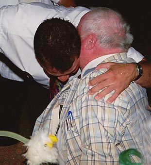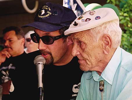 | Michael Sobel in an animated conversation with Bill Guarnere, one of the first original sergeant from Easy Company, trained by Michael's father in Toccoa. Right: Rechts with the webmaster. | ||||||||||||||||||||||||||||||||||||||||||||||||||||||||||||||||||||||||||||||||||