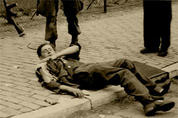 During the war Bert Pulles lived in Eindhoven, Kloosterdreef 19c. His father had a bakery. I got in contact with him after he visited my website. From 1927 till 1933 he lived and went to school in Canada. Short after the ending of the war he married Coby and emigrated to Canada. They still live there. This story has been told before but getting in contact with the narrator who lives in Canada now and was an Eindhoven citizen during the war, is very special. I think that's what Bert thought too. He wrote his story again and mailed it to me with some pictures. |